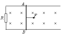 9.如图所示,金属直棒AB垂直跨搁在位于水平面上的两条平行光滑导轨上,棒与导轨接触良好,棒AB和导轨电阻可忽略不计。导轨左端接有电阻R,垂直于导轨平面的匀强磁场向下穿过平面。现以水平向右的恒定外力F使AB棒向右移动至t秒末,AB棒速度为v,则