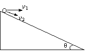 11.如图,光滑斜面顶端有一个小球以v1向左水平抛出,.同时另一小球以初速v2沿斜面下滑,它们同时在底端相遇。不计空气阻力,下列关系正确的是: