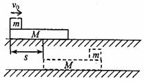 (19分)如图所示,甲、乙两车静止在光滑水平面上。人静止站立在甲车上,乙车装满砂。已知甲车和人的总质量等于乙车和砂的总质量,均为M,两车高度差为h,甲车右端与乙车中点相距s,在甲车右端另放一质量为m且与甲车无摩擦力的物体,若人将物体向右踢出,使物体恰好落在乙车的中点。不计物体陷入砂中的深度,且人相对于甲车始终静止。求: