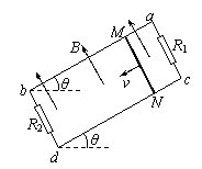 如图所示,平行金属导轨ab、cd与水平面成θ角,间距为L,导轨与固定电阻R1和R2相连,磁感应强度为B的匀强磁场垂直穿过导轨平面。有一导体棒MN,质量为m,导体棒的电阻与固定电阻R1和R2的阻值均为R,与导轨之间的动摩擦因数为μ,导体棒以速度v沿导轨匀速下滑,忽略感应电流之间的作用。则