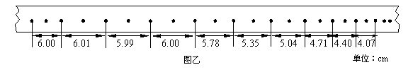 在上述过程中,打点计时器在纸带上所打的部分点迹如图乙所示。