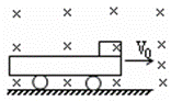 如图所示,光滑水平面上有垂直向里、磁感应强度B=0.5T的匀强磁场,质量为M=2kg的平板小车以V0=14m/s的速度在水平面上运动,将质量为m=0.1kg、电量q=+0.2C的绝缘小物块,无初速地放在小车的右端,小车足够长,与物块之间有摩擦,g取10m/s2。求: