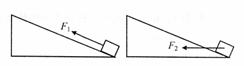 9.如图所示,分别用恒力F1、F2先后将质量为m的物体由静止开始沿用一粗糙的固定斜面由底端拉至顶端,两次所用时间相同,第一次力F1沿斜面向上,第二次力F2沿水平方向。则两个过程 ( )