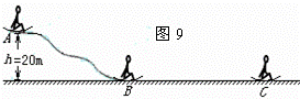 13.(12分)如图9所示,某人乘雪橇从雪坡A点滑至B点,接着沿水平路面滑至C点停止.若人与雪橇的总质量为70kg.表中记录了沿坡滑下过程中的有关数据,请根据图表中的数据解决下列问题:(取g=10m/s2)