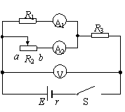 7.在如图所示的电路中,E为电源电动势,r为电源内阻,R1和R3均为定值电阻,R2为滑动变阻器。当R2的滑动触点在a端时合上开关S,此时三个电表A1、A2和V的示数分别为I1、I2和U。现将R2的滑动触点向b端移动,则三个电表示数的变化情况是 ( )