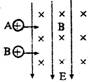 如图,两质量不同、电量相同、重力不计的正离子A和B,以相同的动能垂直进入互相正交的匀强磁场B中。若离子进入场区后,A向上偏,B向下偏。则( )