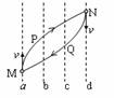 图中的虚线a、b、c、d表示匀强电场中的4个等势面。两个带电粒子M、N(重力忽略不计),以平行于等势面的初速度射入电场,运动轨迹分别如图中MPN和NQM所示。已知M是带正电的带电粒子。则下列说法中不正确的是( )