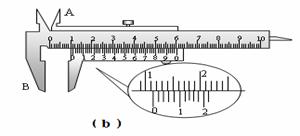 (2)用游标为50分度的卡尺的 (填图中的A或B)测脚,测定某圆筒的内径,示数如图b,由图读出圆筒的内径为 mm。