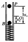 19.( 15分 )质量为m的小球B用一根轻质弹簧连接.现把它们放置在竖直固定的内壁光滑的直圆筒内,平衡时弹簧的压缩量为x0,如图所示,小球A从小球B的正上方距离为3 x0的P处自由落下,落在小球B上立刻与小球B粘在一起向下运动,它们到达最低点后又向上运动,并恰能回到O点(设两个小球直径相等,且远小于x0,略小于直圆筒内径),已知弹簧的弹性势能为