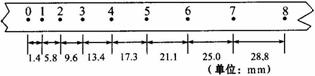14.(8分)如图所示的纸带是某同学在一次实验中得到的,纸带上的O点为打点计时器打的第一点,1、2、3、…则是此后每隔0.02 s打下的点,相邻两点的间隔在纸带上已标出.