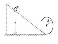 (12分)如图所示,位于竖直平面内的光滑轨道,有一段斜的直轨道和与之相切的圆形轨道连接而成,圆形轨道的半径为R。一质量为m的小物块从斜轨道上某处由静止开始下滑,然后沿圆形轨道运动。要求物块能通过圆形轨道最高点,且在该最高点与轨道间的压力不能超过5mg(g为重力加速度)。求物块初始位置相对圆形轨道底部的高度h的取值范围。