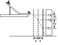 在做“研究平抛物体的运动”实验中,为了确定小球在不同时刻所通过的位置,实验时用如图所示的装置,先将斜槽轨道的末端调整为水平,在一块平木板表面钉上白纸和复写纸,并将该木板竖直立于槽口附近。使小球从斜槽上紧靠挡板处由静止释放,小球撞到木板并在白纸上留下痕迹A;将木板向右平移距离x,再使小球从斜槽上原处由静止释放,小球撞在木板上得到痕迹B;重复上述过程,又得到痕迹C。若测得木板每次移动距离x=10cm,A、B间距离