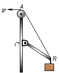 如图所示,AC是上端带定滑轮的固定竖直杆,质量不计的轻杆BC一端通过铰链固定在C点,另一端B悬挂一重为G的重物,且B端系有一根轻绳并绕过定滑轮A,用力F拉绳,开始时∠BCA>90°,现使∠BCA缓慢变小,直到杆BC接近竖直杆AC。此过程中,杆BC所受的力 ( A )