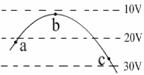 6.( )如图,三条平行等距的虚线表示电场中的三个等势面,电势值分别为10V、20V、30V,实线是一带负电的粒子(不计重力)在该区域内的运动轨迹,对于轨迹上的a、b、c三点来说