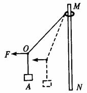 5.如右图所示,轻绳一端系在质量为m的物件A 上,另一端系在一个套在粗糙竖直杆MN的圆环上.现用水平力F拉住绳子上一点O,使物件A从图中实线位置缓慢下降到虚线位置,但圆环仍保持在原来位置不动.则在这一过程中,环对杆的摩擦力F1和环对杆的压力F2的变化情况是