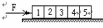 15.如图所示,五块质量相同的木块,排放在光滑的水平面上,水平外力F作用在第一木块上,则第三木块对第四木块的作用力为______.