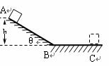 如图所示,物体从斜坡上的A点由静止开始滑到斜坡底部B处,又沿水平地面滑行到C处停下,已知斜坡倾角为θ,A点高为h,物体与斜坡和地面的动摩擦因数都是μ,物体由斜坡底部转到水平地面运动时速度大小不变,则B、C间的距离d=_______. 19.质量为50kg的物体放在光滑的水平面上,某人用绳子沿着与水平面成45°角的方向拉物体前进,绳子的拉力为200N,物体的加速度大小为