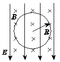 21.一质量为m的带电液滴,在电场强度为E、磁感应强度为B的相互垂直的匀强电场和匀强磁场中,以半径R在竖直平面内做匀速圆周运动,电场和磁场的方向如图所示,则