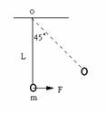 11.(18分) 如图所示,一个质量m的小球被长为L的轻质细绳系住,悬挂在天花板上O点处于静止状态,现对小球施加一个 大小为F= mg的水平恒力作用,使小球从O点正下方开始向右运动,当小球运动到悬线与竖直方向成45°角时,撤去F,使小球自由向上摆动,忽略空气阻力。
