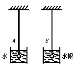 12、如图所示,A、B两球完全相同,分别浸没在水和水银的同一深度,A、B用同一种特殊材料制作。当温度稍微升高,球的体积就明显增大,如果水和水银的初温及缓慢升高后的末温都相同,且两球热膨胀后体积也相等,两球也不上升,则: