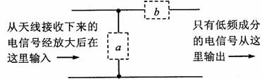 在收音机电路中,经天线接收下来的电信号既有高频成分又有低频成分,经放大后,需要把高频成分和低频成分分开,只让低频成分输入下一级,如果采用如图所示的电路,图中虚线框a和b内只用一个电容器或电感器,那么 (AC )