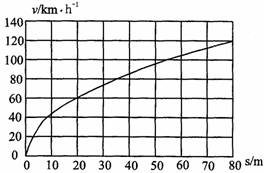 14.(10分)如图所示,绘出了某汽车刹车到停止时刹车痕长度(即刹车距离)与刹车前车速的关系。v为车速,s为刹车痕长度。