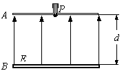 21.(14分)静电喷漆技术具有效率高,浪费少,质量好,有利于工人健康等优点,其装置如图所示。A、B为两块平行金属板,间距d=0.40m,两板间有方向由B指向A,大小为E=1.0×103N/C的匀强电场。在A板的中央放置一个安全接地的静电油漆喷枪P,油漆喷枪的半圆形喷嘴可向各个方向均匀地喷出带电油漆微粒,油漆微粒的初速度大小均为v0=2.0 m/s,质量m=5.0×10-15kg、带电量为q=-2.0×10-16C。微粒的重力和所受空气阻力均不计,油漆微粒最后都落在金属板B上。试求: