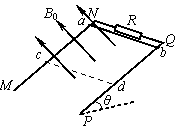 (14分)如图所示,MN、PQ为间距L=0.5m足够长的平行导轨,NQ⊥MN。导轨平面与水平面间的夹角θ=37°,NQ间连接有一个R=5Ω的电阻。有一匀强磁场垂直于导轨平面,磁感强度为B0=1T。将一根质量为m=0.05kg的金属棒ab紧靠NQ放置在导轨上,且与导轨接触良好,导轨与金属棒的电阻均不计。现由静止释放金属棒,金属棒沿导轨向下运动过程中始终与NQ平行。已知金属棒与导轨间的动摩擦因数μ=0.5,当金属棒滑行至cd处时已经达到稳定速度,cd距离NQ为s=1m。试解答以下问题:(g=10m/s2,sin37°=0.6,cos37°=0.8)
