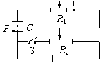 开关S,当滑动变阻器R1、R2的滑片处于各自的中点位置时,