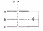 11.如图,水平放置的三块带孔的平行金属板与一个直流电源相连,一个带正电的液滴从A板上方M点处由静止释放,不计空气阻力,设液滴电量不变。从释放到到达B板小孔处为过程I,在BC之间运动为过程II,则 ( )