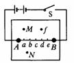 (2) ①实验中接通电路后,若一个探针与基准点b接触,另一个探针分别在基准点两侧找到了实验所需的点M、N,如图6所示,则当此探针与M点接触时,电流表指针应 (填“左偏”、“指零”或“右偏”);当此探针与N点接触时,电流表指针应 (填“左偏”、“指零”或“右偏”).