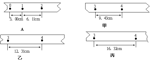 ① 在甲、乙、丙三段纸带中,属于纸带A的是