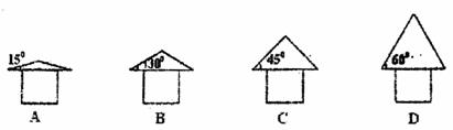 4.4间新房即将建成时要封顶,考虑到下雨时落至房顶的雨滴能尽快地淌离房顶,要设计好房顶的坡度。设雨滴沿房顶下淌时做无初速度、无摩擦的运动,那么,图中所示的四种情况中符合要求的是 ( )