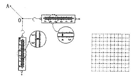 (2)在本题的虚线方格纸上按作图法的要求画出这两个力及它们的合力。