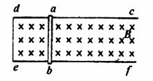 21.(10分)如图所示,固定在水平桌面上的光滑金属框架cdef,处于竖直向下的均匀增加的匀强磁场中,金属棒ab搁在框架上,此时(即t=0时)磁感应强度为B0,abed构成一个边长为L的正方形,棒的电阻为r,其余部分电阻不计,已知磁感应强度每秒均匀增加的量为k。