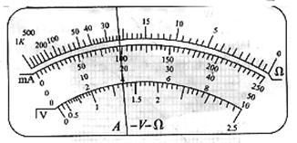 (4)某次测量中用已调零且选择旋钮指向欧姆档:“×10”位置的多用表测某电阻阻值,根据图中所示的表盘,被测电阻阻值 。若将该表选择旋钮置于1mA档测电流。表盘仍如图所示,则被电流为 mA