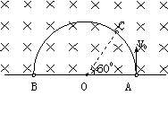 在有下界的匀强磁场界面上A处有一质子以速度V0垂直于界面和磁场方向射出,轨迹如图所示,O为圆心,在B处另有一质子同时射出,在C点相碰,OC两点连线与界面成600。