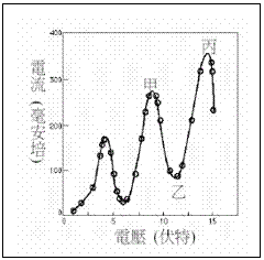 9.(★★★★)左图为富兰克(Franck)-赫兹(Hertz) 实验装置示意图,其中夫兰克-赫兹管内含有水银蒸气.1914年,夫兰克与赫兹用实验观察热电子被加速穿透汞蒸气时,到达回路阳极的热电子流大小的起伏变化,以验证汞原子内的电子能态是量子化的.右图为实验结果电流与电压的关系.下列有关此实验的叙述正确的是( )