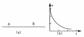 12.如图(a)所示,AB是某电场中的一条电场线.若有一电子以某一初速度,仅在电场力的作用下,沿AB由A运动到B,其速度图象如图(b)所示,下列关于A、B两点的电场强度EA、EB和电势UA、UB的判断正确的是[ ]