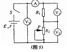 在如图(5)所示电路中,闭合电键S,当滑动变阻器的滑动触头P 向下滑动时,四个理想电表的示数都发生变化,电表的示数分别用I、U1、U2和U3表示,电表示数变化量的大小分别用ΔI、ΔU1、ΔU2和ΔU3表示.下列比值正确的是