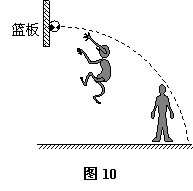 (10分)在某次篮球运动中,球打到篮板上后垂直反弹,运动员甲跳起来去抢篮板,刚好没有碰到球,球从站在他身后的乙的头顶擦过,落到了地面上(如图10所示)。已知甲跳起的摸高是h1,起跳时距篮板的水平距离为s1,乙的身高是h2,站立处距离甲的水平距离为s2,请根据这些数据求出篮球垂直反弹的速度v0。