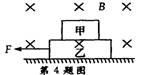 如图所示,甲带正电,乙是不带电的绝缘块,甲、乙叠放在一起置于光滑的水平地面上,空间存在水平方向的匀强磁场,在水平恒力F的作用下,甲、乙一起向左加速运动,那么在加速运动阶段 ( )