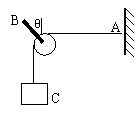 如图。滑轮本身的重力可以忽略不计,滑轮轴O安在一根轻木杆B上,一根轻绳AC绕过滑轮,A端固定在墙上,且绳保持水平,C端下面挂一重物,BO与竖直方向夹角θ=450系统保持平衡,若保持滑轮的位置不变,改变θ的大小,则滑轮受到木杆的弹力大小变化情况是……………………………………( )