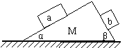 21、如图所示,一质量为M的楔形木块放在水平桌面上,它的顶角为900,两底角为α和β,a、b为两个位于斜面上质量均为m的小木块,已知所有接触面都是光滑的,现发现a、b沿斜面下滑。而楔形木块静止不动,这时楔形木块对水平桌面的压力等于…………( )