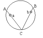 如图,AC、BC为位于竖直平面内的两根光滑细杆,A、B、C恰好位于同一圆周上,C为最低点,a、b、c为套在细杆上的两个小环,当两环同时从A、B两点由静止开始自由下滑时,下面正确的是……………………………( )