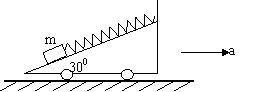 的加速度运动时,m与斜面保持相对静止,求弹簧伸长的长A ,若使物体m对斜面的无压力,小车加速度必须B ,若使弹簧保持原长,小车加速度大小C 、方向D 。