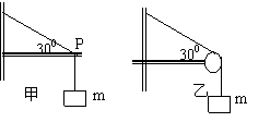 2、如图甲中一水平轻杆在右端的P点系有两根细线,一根斜上拉且固定,另一根竖直向下连接质量为m的物体而处于平衡,图乙中水平轻杆右端固定,左端连接一个光滑滑轮,用细线绕过滑轮,上端固定而下端连接与甲同样的物体处于平衡。下列说法中正确的是:( )