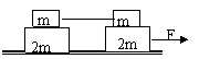 8、如图所示,光滑水平面上放置质量分别为m和2m的四个木块,其中两个质量为m的木块间用一不可伸长的轻绳相连,木块间的最大静摩擦力是μmg。现用水平拉力F拉其中一个质量为2 m的木块,使四个木块以同一加速度运动,则轻绳对m的最大拉力为( )