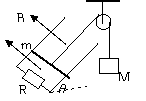 18.(17分)如图所示,两根与水平面成θ=30°角的足够长光滑金属导轨平行放置,导轨间距为L=1m,导轨底端接有阻值为1 W的电阻R,导轨的电阻忽略不计。整个装置处于匀强磁场中,磁场方向垂直于导轨平面斜向上,磁感应强度B=1T。现有一质量为m=0.2 kg、电阻不计的金属棒用细绳通过光滑滑轮与质量为M=0.5 kg的物体相连,细绳与导轨平面平行。将金属棒与M由静止释放,棒沿导轨运动了2 m后开始做匀速运动。运动过程中,棒与导轨始终保持垂直接触。(取重力加速度g=10m/s2)求: