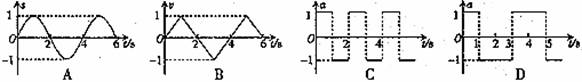 设物体运动的加速度为a、速度为v、位移为s。现有四个不同物体的运动图象如图所示,假设物体在t=0时的速度均为零,则其中表示物体做单向直线运动的图象是